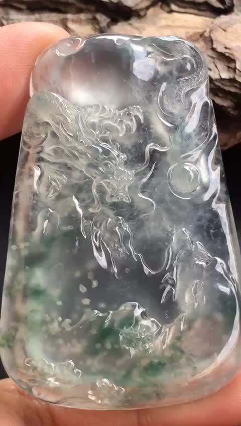 很喜欢这块雪花棉翡翠飘花龙牌,卖家要三万多