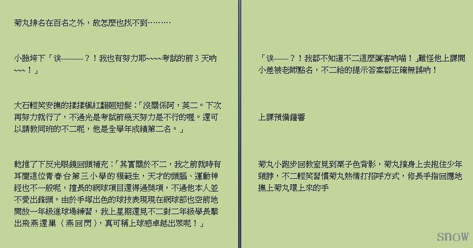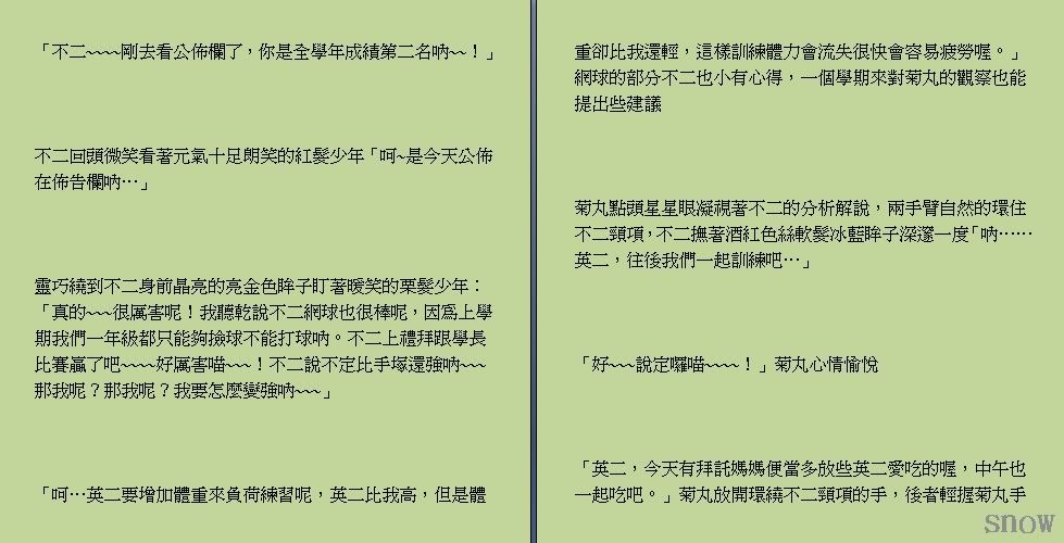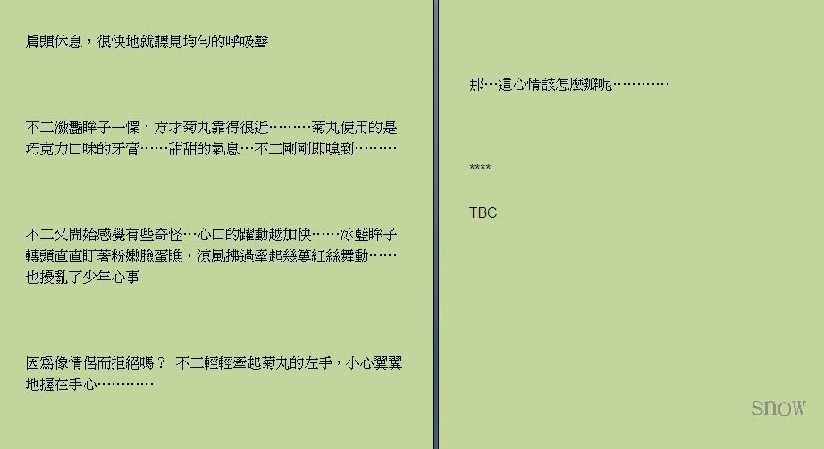 飞雪的不二菊,算是还原了很单纯的、36的情感吧!