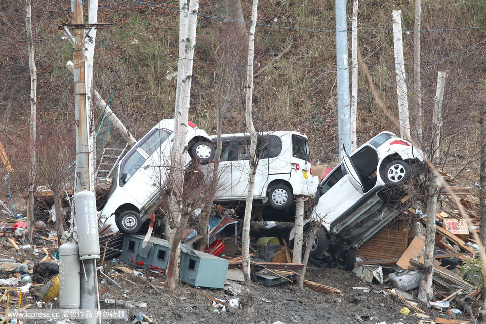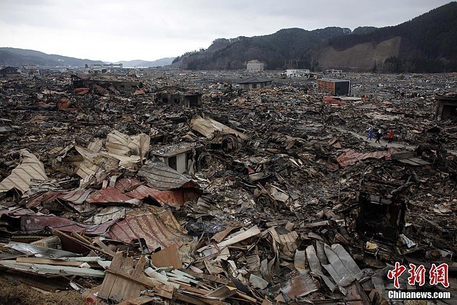 3月14日,日本重灾区宫城县南三陆町,小镇几乎被夷为平地