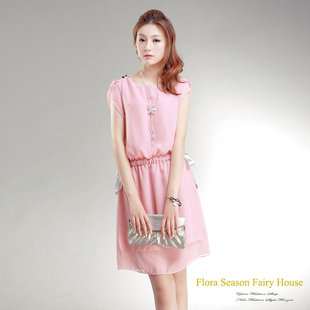 收腰雪纺 大家敢穿么 多么显胖的颜色 穿上还是很清凉的嘛 配上短发+棕色小包包 加分加分~