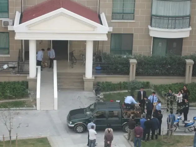 打狗队强迫狗主人与狗狗分开的场景