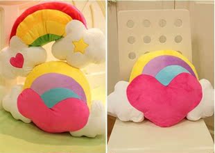 一对包邮 七夕情人节礼物 彩虹天使爱心汽车靠垫抱枕/办公腰靠