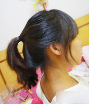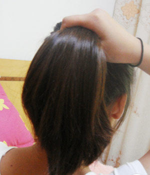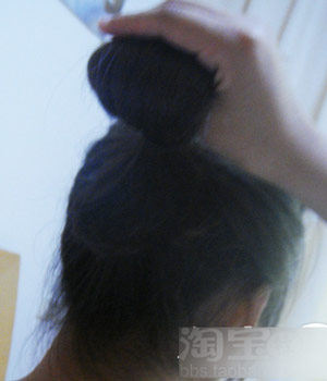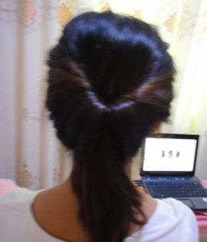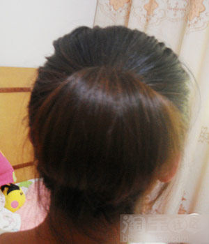 发尾的部分慢点,均匀的塞进去.全部进去之后,亲们还记得上面用手指分开的头发吧