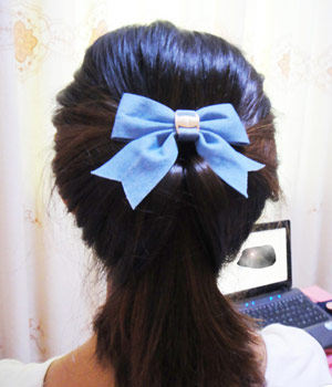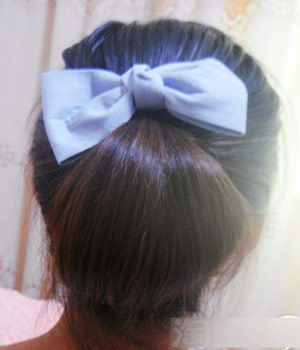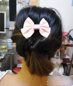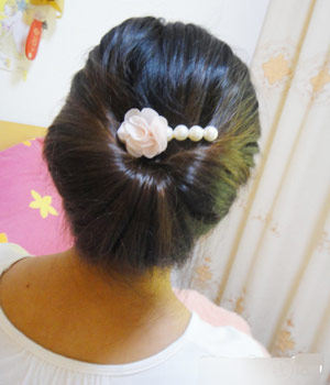 哈自己DIY的盘发叉子 上面粘了个蝴蝶结 哈哈叉子插进发髻