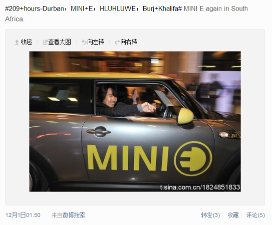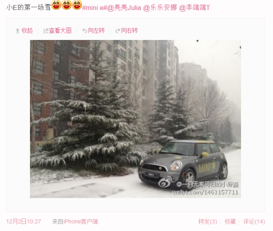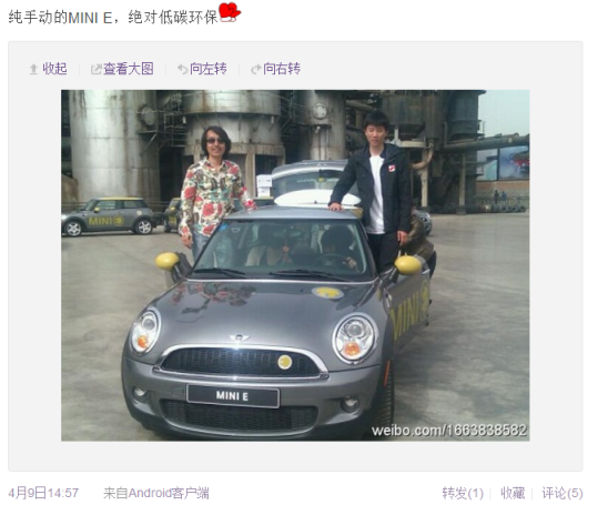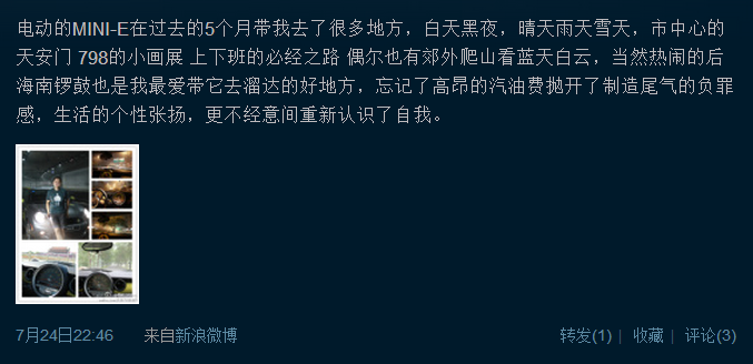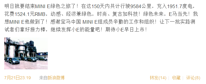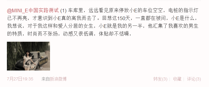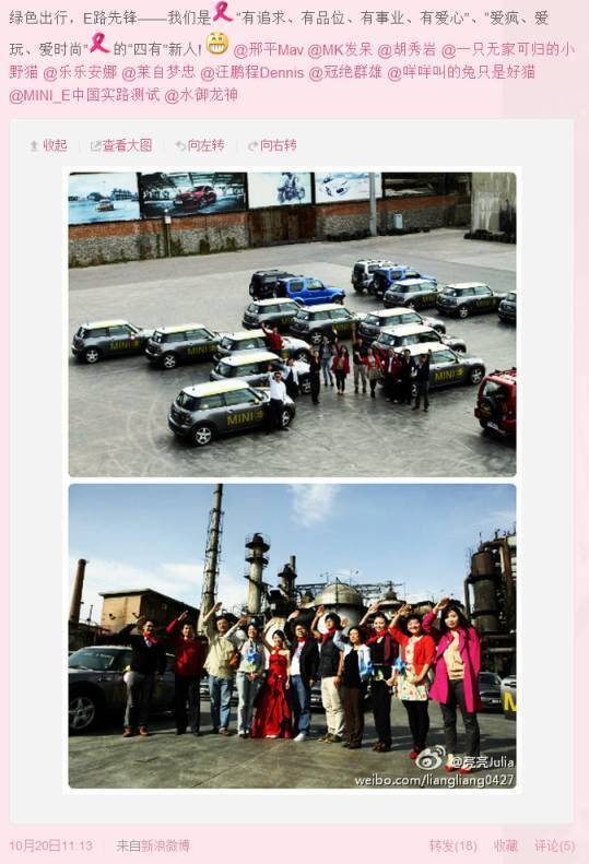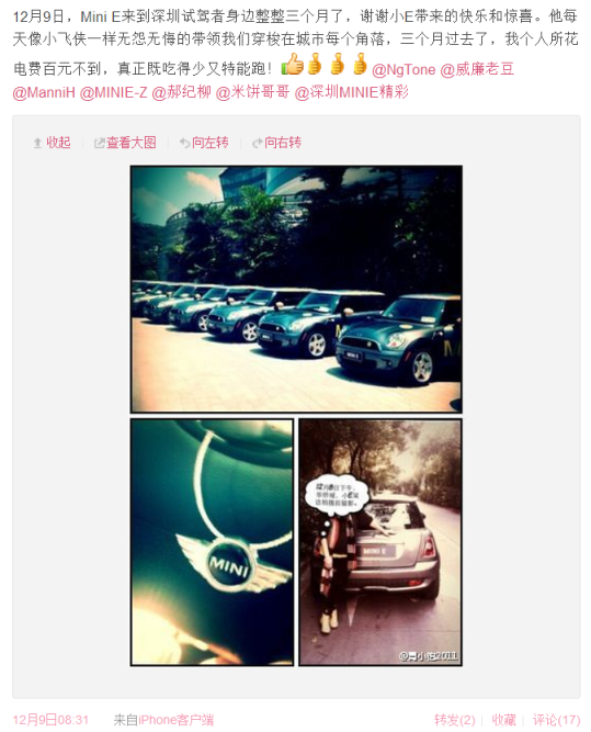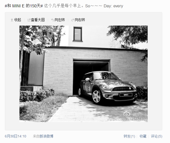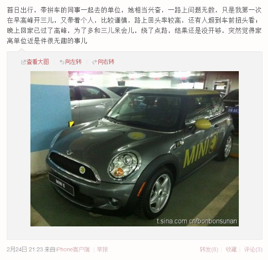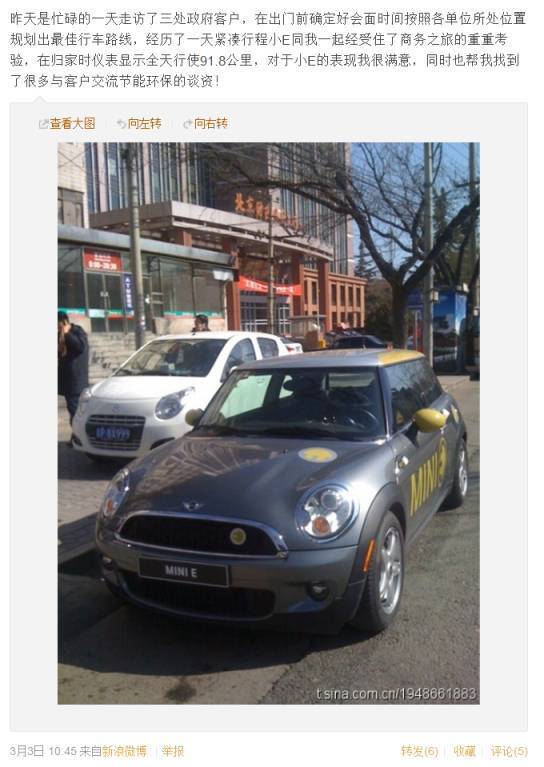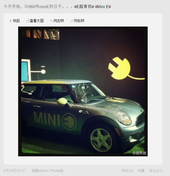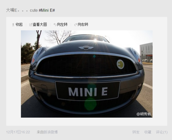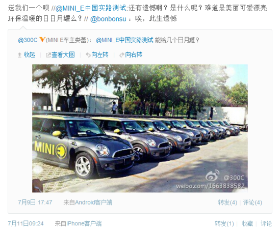 很多MINI E车主的微博头像都和小E有关,它太独特了。