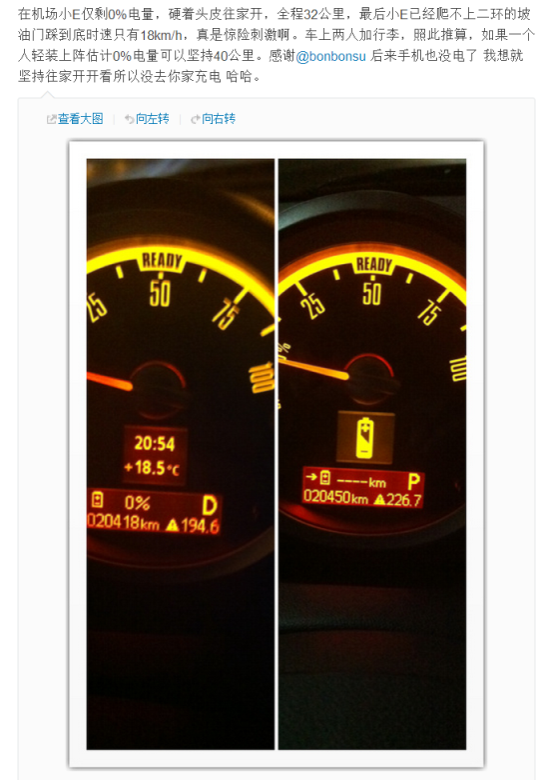 熟悉充电,也熟悉电力行车和小E的独特操控。 3 行车之乐