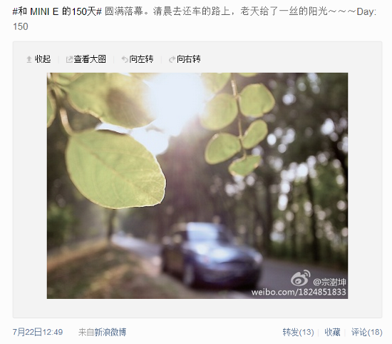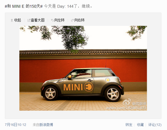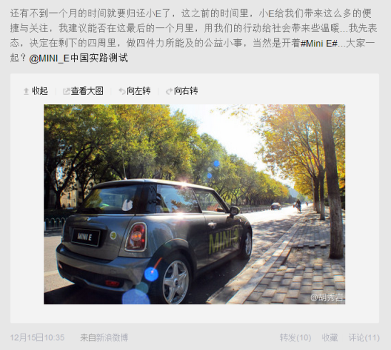 转眼岁末,MINI E第二批实路测试也要还车了,作为一个从首批申请就开始关注它的用户来说,这一年过得太快,也正是因为有了小E,生活之中才多了一个圈子,多了一份乐趣。 1 相识