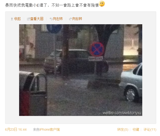 北京今年的暴雨给了MINI E一个意外的挑战。由于没有燃油车一样的进排气,电动小E在雨水中反而不用担心水淹发动机而把车弄坏! 6 和MINI E在一起的150天