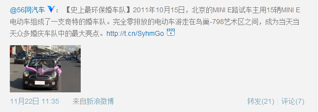 这可能是MINI E全球实路测试中都少见的事件——北京的小E车主组成了一只婚车队,为一位MINI E车主的婚礼游走京城!