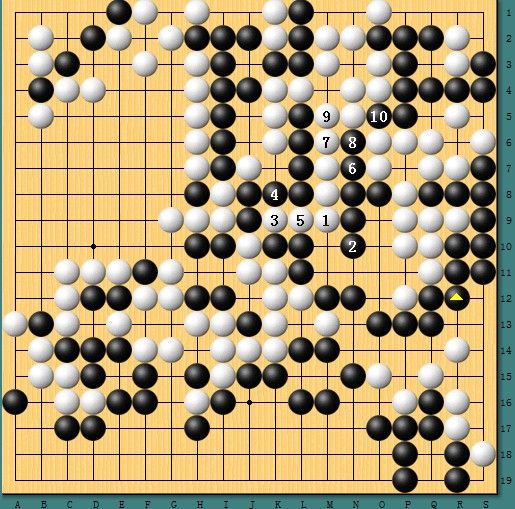 图六,若转换黑棋大胜。白可以1位冲出后3位断吃,黑4位接后6-10冲断弃子转换。这样的结果是党毅飞大胜。