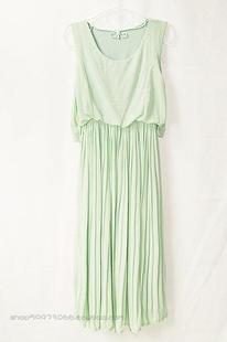 【野原】清新森女新款雪纺仙波西米亚薄荷绿无袖背心百褶连衣长裙