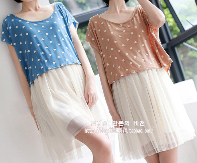 森女日系田园小清新百搭波点宽松短袖 背心打底连衣裙纱裙 两件套 RMB 59.20