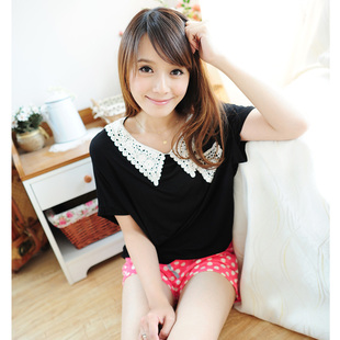 ForeverKid 拼接钩花蕾丝领口袋 韩版莫代尔棉蝙蝠衫短袖T恤 RMB 39.00