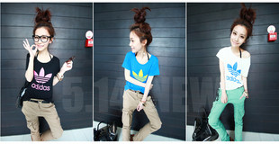 2012夏装新款时尚adidas三叶草短袖韩版莫代尔T恤露肩女姐妹装 RMB 45.00