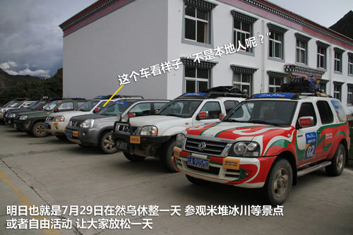 2012年郑州日产车主大会-川藏线大队7月28日抵达然乌后,与另外一队的滇藏大队汇合。次日29日全体在经过了5天的行程后,在美丽的然乌休整一天。自由活动,可以参观著名的米堆冰川,晚上还安排了热闹非凡的高原篝火晚会。