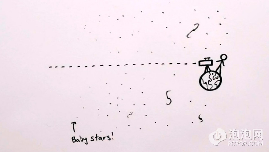 第二种解释:当我们仰望天空时我们看到的宇宙也许是众多星星尚未形成的宇宙。所以夜空是黑色的。