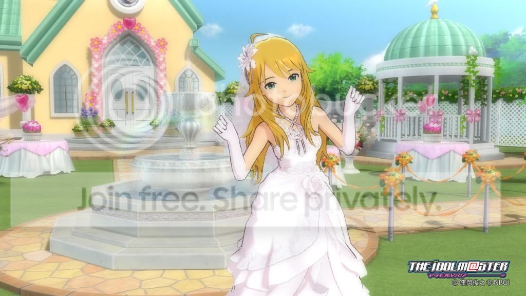 MIKIMIKI果然还是可爱系的呢,穿了婚纱之后也给人感觉还是那种活泼可爱的类型,要是能够和贵音一左一右然后我站中间该多好啊…………(口水中)