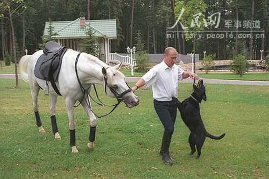 普京和他的马和狗在一起