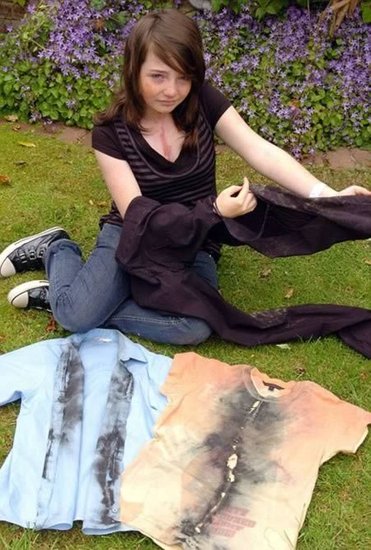 一个克罗地亚女人严重烧伤**,闪电击中她的嘴,进入了她的身体通过她的屁股。据报道闪电袭击Natasha Timarovic的家时,她正在刷齿——她的嘴接入水龙头,使电流通过自己的身体。当时她穿着鞋闪电箭无法通过她的脚,所以它找了另一个出路,从直肠出来,然后通过她潮湿的接地浴帘。这是令人难以置信的痛苦,我觉得电流通过我的躯干,然后我记不太清楚了,”Timarovic说。医生解释说:“如果她没有穿鞋她可能已经死了。”