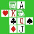 程序开始时,上面绿色背景中全是空白的,而下面的白底色区域内有四列黑色的A到2的牌号。我的操作就是点击下面黑色的代表牌的号码,程序结束时,下面的四列牌号全变成灰色,而上面分布着52个号码。