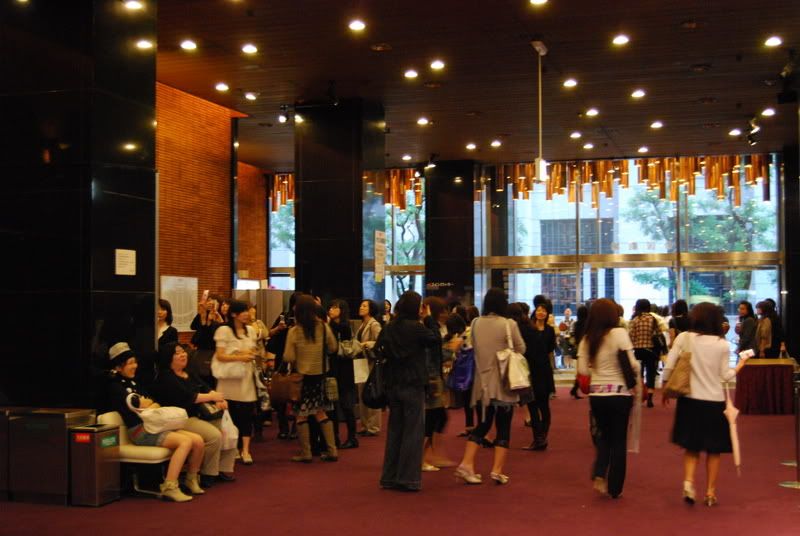 剧场门外.........来看的女生都打扮过的, 我怎麼觉得像去喝喜酒...看回自己, 一头乱发(在车站跑到剧场)....