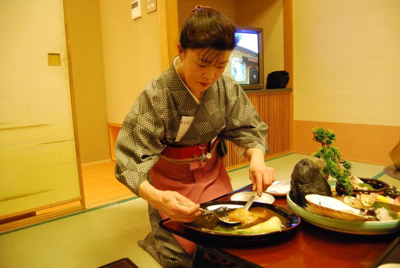 这酒店的优点是有中国服务生, 一边上菜一边讲解, 原来是上海来的, 另外还有一位日本大妈帮忙分