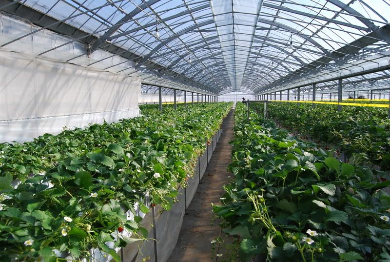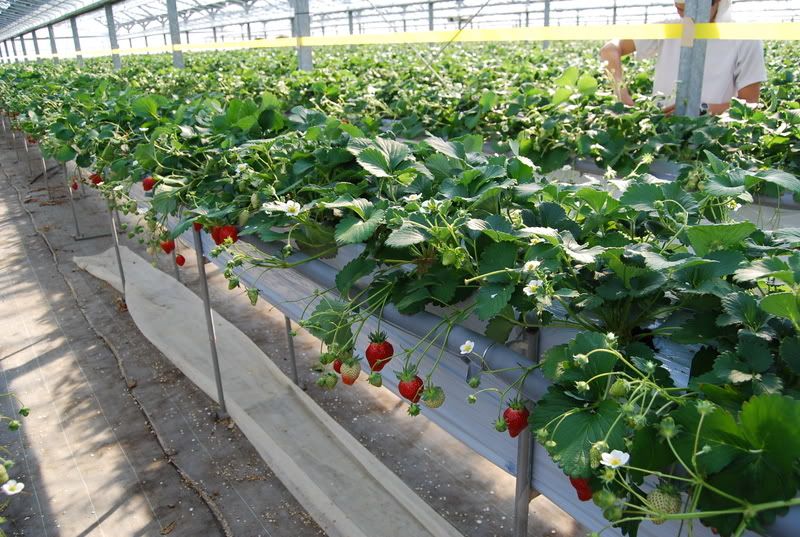 室内温度30以上, 看见一片草莓田....心情兴奋, 草莓园都是离市区比较远, 为了来这里花了很多时间....但仍是很值得