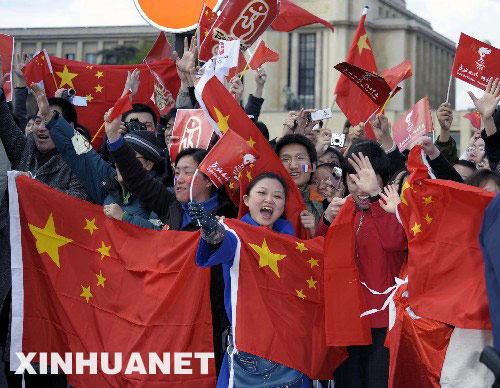 旧金山火炬传递现场:华人气势完全压制&quo