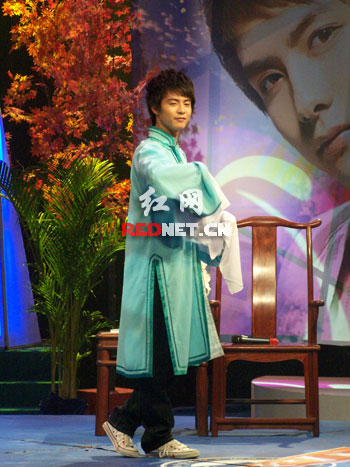 没唱青衣 节目组准备的戏服 他就穿上走了几步 甩了几下袖子 小孩还是特害羞得那种