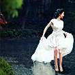 林深之处豁然冲出一道白绸,那白绸之上一个身着素白纱衣黑发少女素色缎靴轻点绸带之上,她双臂缠着的两条白色绸带随风而飘,羽化登仙,遗世独立。