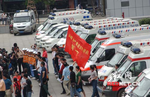 浩浩荡荡的几十辆急救车正式上