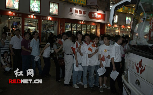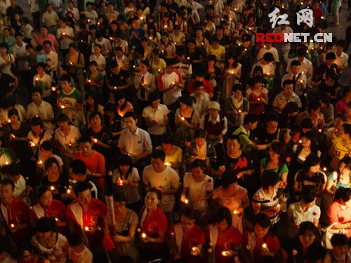5月14日晚,长沙步行街中心广场,长沙网友自发聚集这里,为地震灾区人民点灯祈祷,“我们在一起,我们是一家人,为支援灾区捐钱献血,点灯祈祷,吹响了爱心集结号!