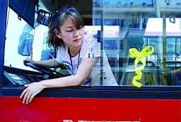 昨日,长沙火车站,湖南巴士的公交车贴上了为灾区人民祈福的黄丝带