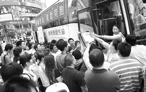 5月14日,长沙黄兴路步行街,献血的市民将献血车围得水泄不通