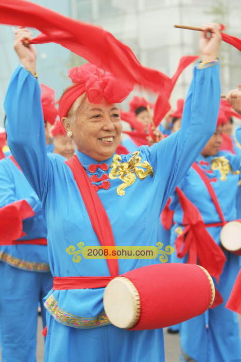 昌平老太锣鼓迎圣火 五星红旗一路相