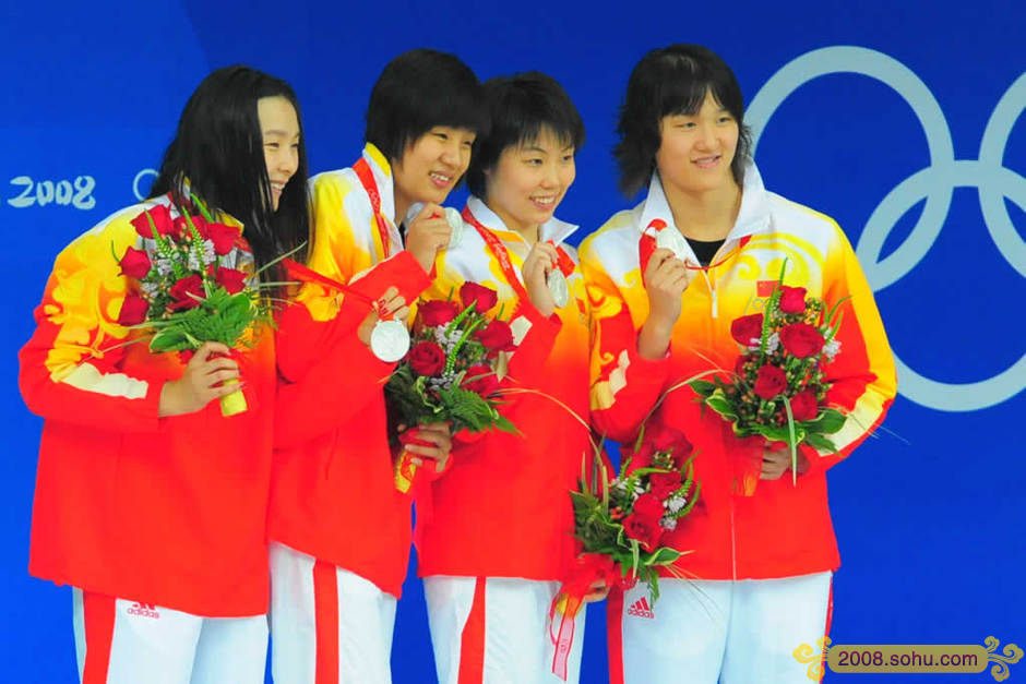 在刚刚结束的北京奥运会女子4x200米自由泳接力决赛中,澳大利亚队夺得冠军,成绩7分44秒31;中国队(杨雨/朱倩蔚/谭淼/庞佳颖)夺得亚军,成绩7分45秒92;美国队夺得季军,成绩7分46秒33。前三甲均打破世界纪录(7:50.09)。