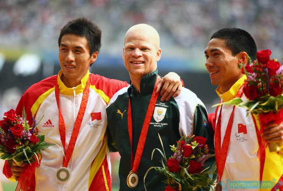在今天的男子200米T12级颁奖仪式上,友谊超越金牌.