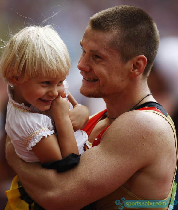 今天,残奥会男子跳远F42/44级决赛冠军德国选手沃伊特克·奇日在比赛后与女儿一起庆祝.