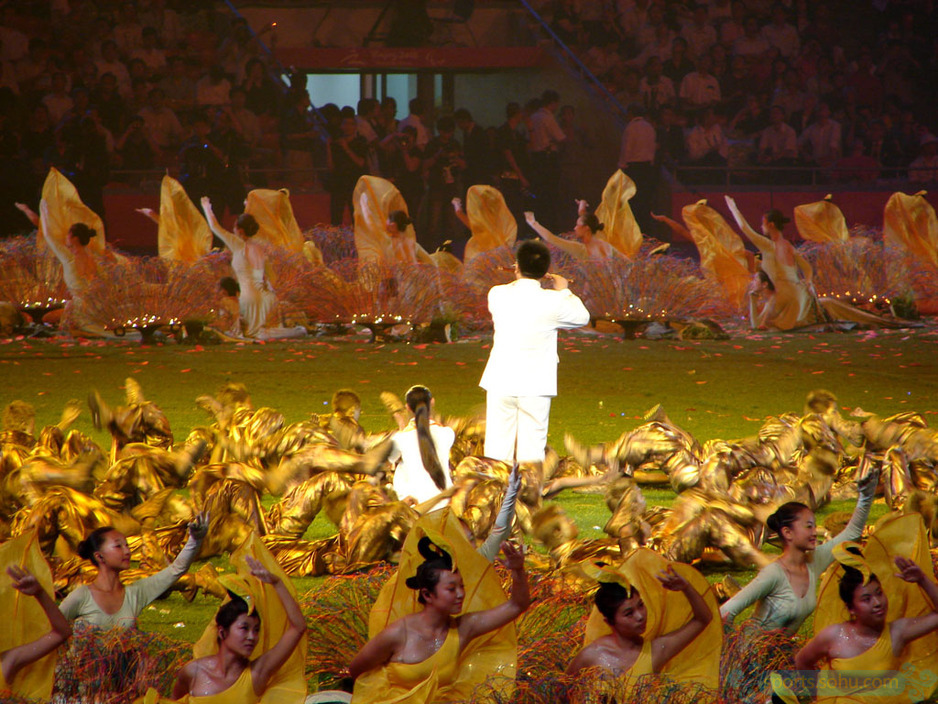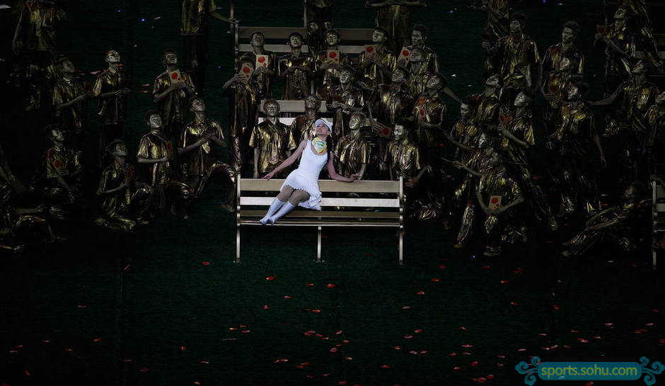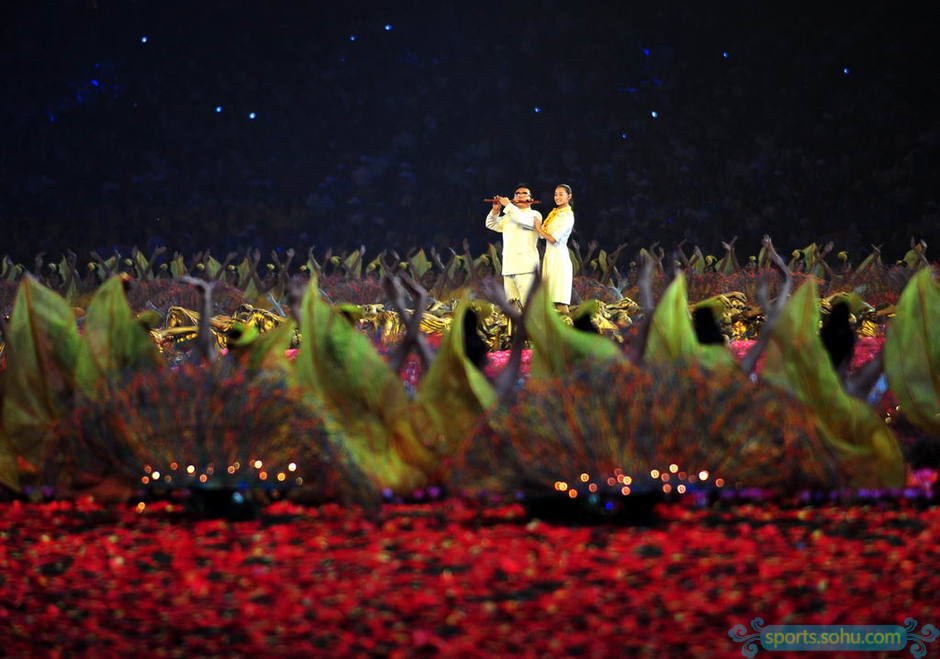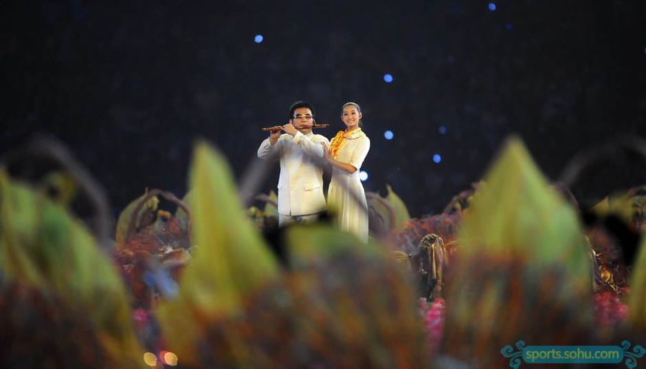 吹奏笛子的盲人,用他的音乐来表现奥林匹克精神,表现了中国传统文化中“天人合一”的哲学思想。