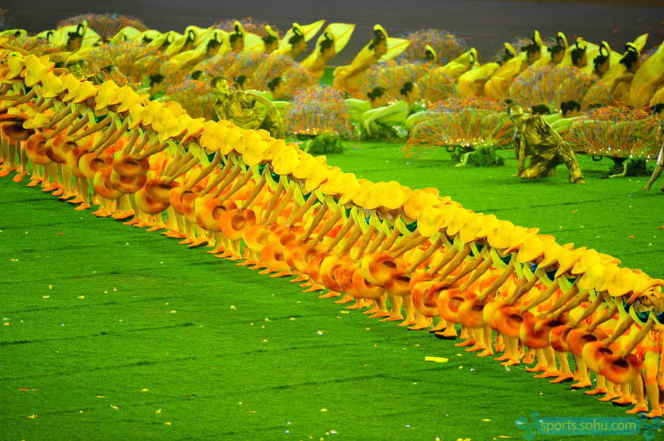 这个节目以太阳的温暖与牧童的短笛交织而成的,在以人体组成的“太阳”中,盲人演员吹响牧笛,营造出田园诗般的意境,田园诗般的舞蹈与音乐,展现出在丰收的田野中收获时的愉悦。