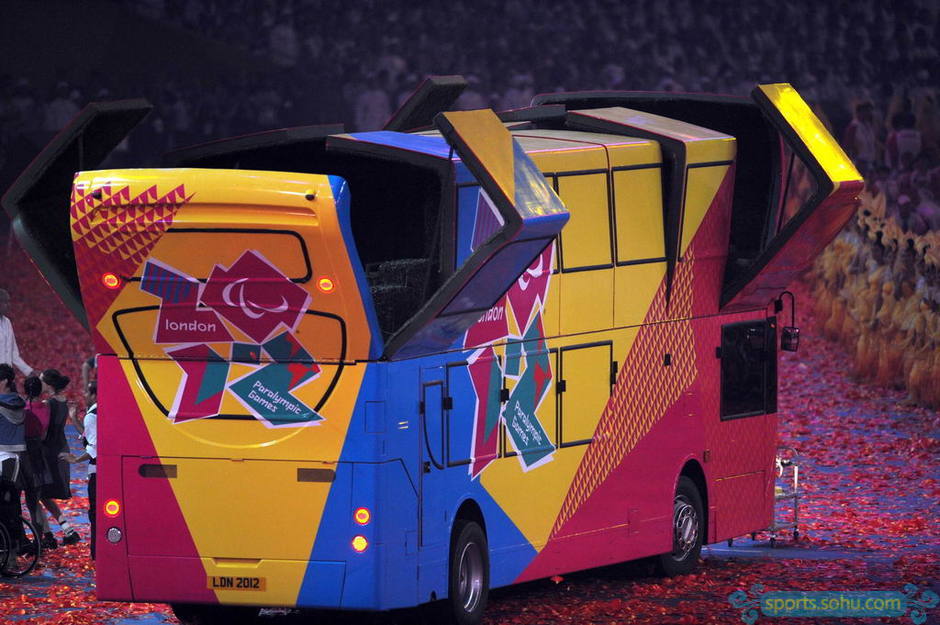 伦敦大巴在返回时展示了其内部结构,其主体是绿色的繁密草地,栏板被切割成伦敦海岸线的形状。在大巴展开的花瓣上,舞蹈演员击打着急促紧张的节奏,Lord Nelson 泰然自若地站在大巴上共同庆祝这一时刻。伦敦将其世界文明的标志、城市艺术和生动的现代文化完美地组合在一起,这将为英国和全世界创造一个感受残奥会的崭新机会。