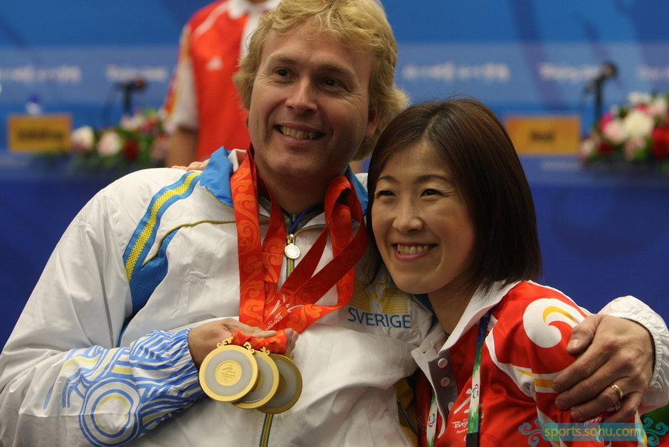 比赛结束后,他庆he 胜li 时,特意披上了中国国旗。