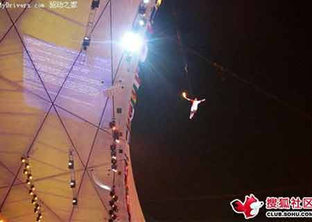 鸟巢的灯光和投影显示系统使用了上百台Windows XP Embedded系统的服务器产品,而在开幕式主火炬点火的关键时刻,其中一台投影服务器正巧出现了蓝屏。没有错,正当李宁在空中跑道大步迈进的时候,蓝屏就在他的身旁。不知道微软看到这样的照片心里会是怎样的想法
