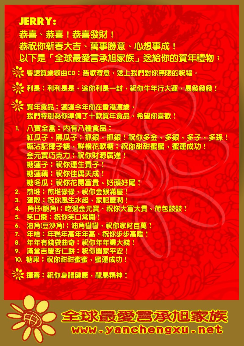 Jerry,利利是是,送你利是一封,祝你牛年行大运。