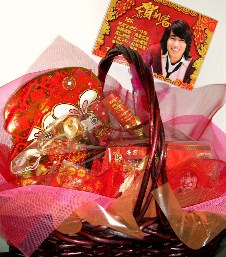 这是家族送给Jerry的贺年礼物篮。