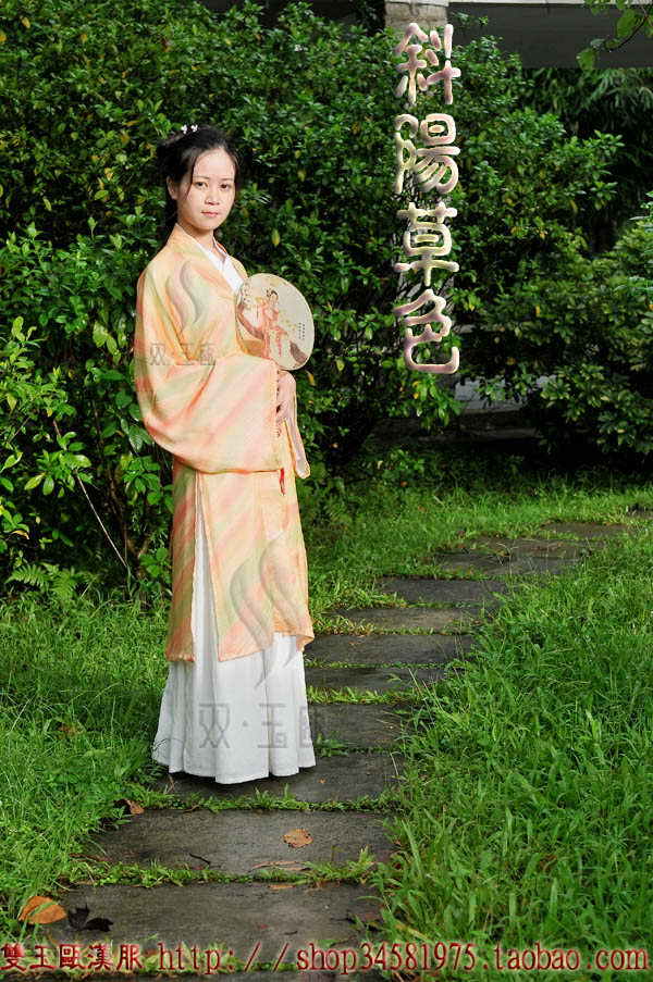 分别是:1 斜阳草色(褙子) 2 流觞(曲裾) 3 花满蹊(对襟襦裙) 4 水月(交领襦裙) 5 水濯红莲 (对襟襦裙) 6 天香(交领襦裙)