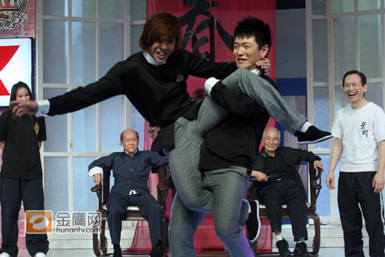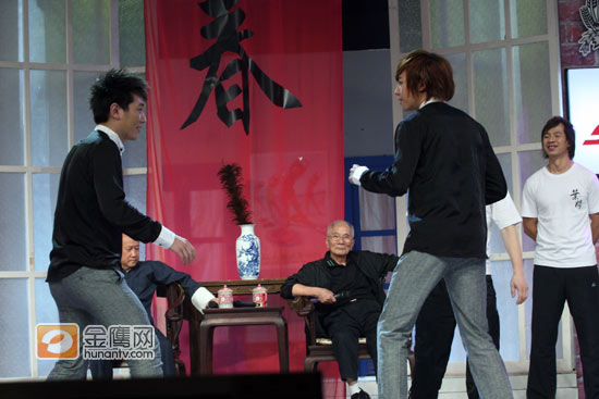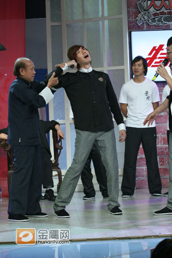 节目录制中,“咏春”师傅现场示范“咏春”手法,但是由于“咏春”是属于一种实战武术,在练习中如果是没有武术基地的人很容易受伤,于是让谁在节目中和咏春师傅演练成了一个“烫手山芋”,推脱之中,俞灏明和田源两人避开师傅,直接“开打”。岂料,“对打”中,田源招架不住,直接把俞灏明腾空抱起,作势往观众席上扔。