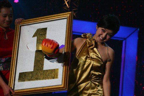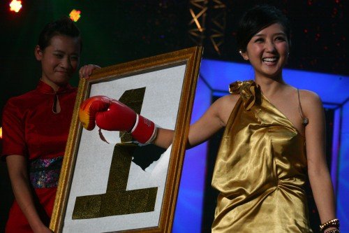 11月8日晚间在北京温都水城,“超女”何洁再度现身云南卫视直播的《仁和谁最闪亮 音乐现场》,大展搞怪本色。此番而来,何洁并不是专为打歌,而是诚心为即将开播的另一档音乐节目《音乐集结号》送上祝福。面对一定要送心水礼物的“考题”,何洁端上金灿灿的一个“1”字,并当众从背后一拳捣破,说这是寓意收视率早日破1,还真是让人笑得汗津津呢。