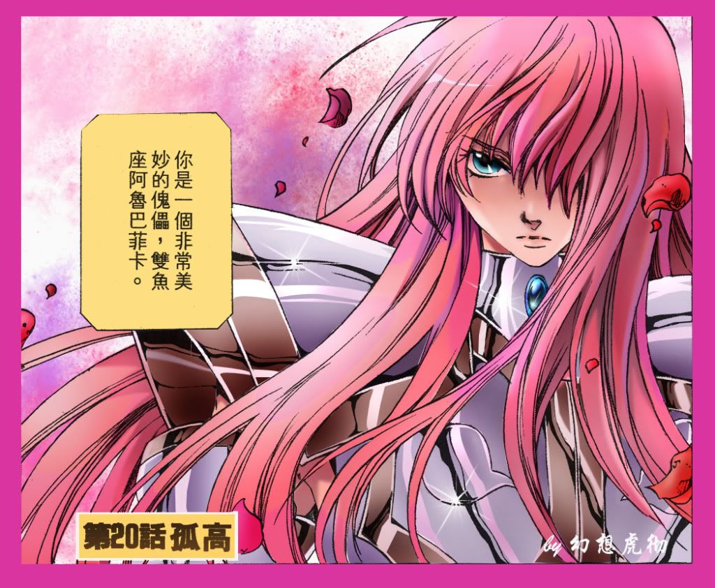 目送阿释密达经过双鱼宫,我们互相点头致意,有多久没见过面了呢?这个神秘的阿释密达总是以冥想为借口,待在自己的宫殿里什么也不做。我真的不知道他在想些什么,他的眼睛紧闭着,仿佛什么也看不见,又仿佛看透了世间的一切生与苦。迷惘还是超脱?说不得,真是个神秘的人啊……在圣战将至的紧张时刻,只有我们两个悠闲地好似置身事外,他,因为在冥想,我,因为有剧毒……