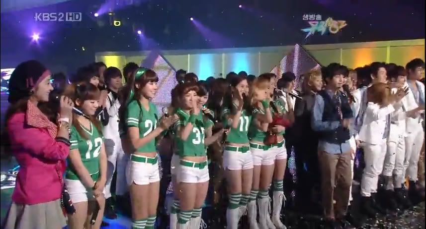 亲们要看最后颁奖的时候,在忙内说话的时候可以看到cnblue在后面, 郑女婿从后面抱着那个他们队里长的象女生的那个 ( 估计是不好意思直接看着忙内) ~~kkkk 我尝试去找找图~~